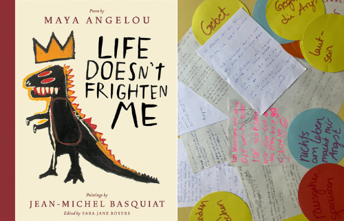 In response to Maya Angelou’s poem “Life Doesn’t Frighten Me“ (1978), the poet Tanasgol Sabbagh supported us to produce our own texts.